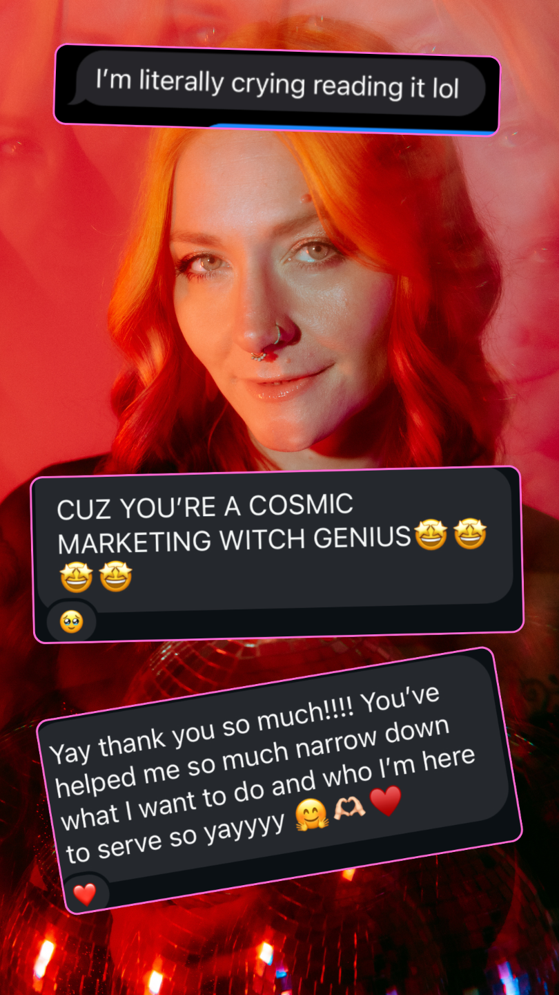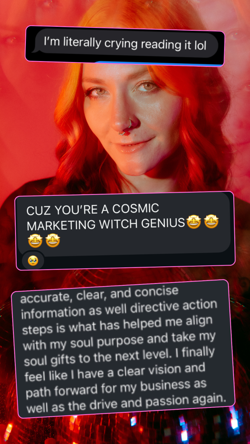 For 13+ years, I’ve helped coaches, healers, and spiritual entrepreneurs build businesses aligned with their actual cosmic design — not whatever cookie-cutter strategy the online space is pushing this week.